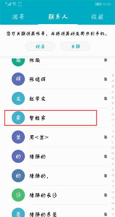 1.首先打开荣耀9i手机桌面的联系人,选择好要编辑的联系人,这里小编选择【智能家】