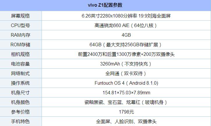 拆机之前,首先来简单回顾一下,vivo Z1配置参数与外观部分,如下所示。