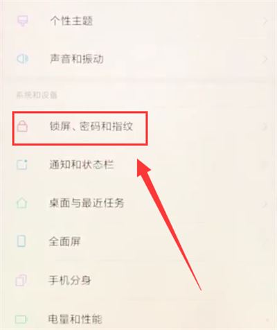 2.点击锁屏密码和指纹