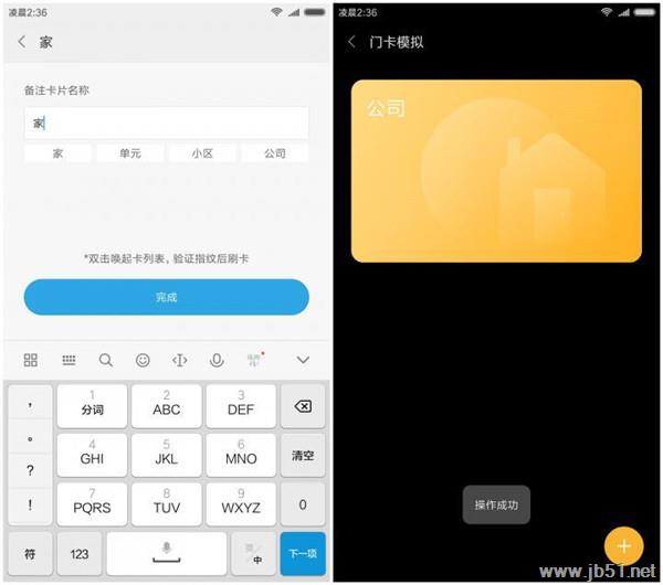 第四步:定义好卡片名称点击【完成】,是指完成之后即可使用手机刷门卡了。