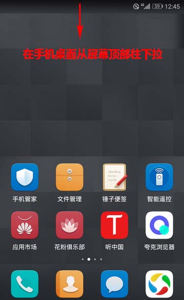 1、首先,在手机桌面从屏幕顶部往下拉,以便调出通知栏。