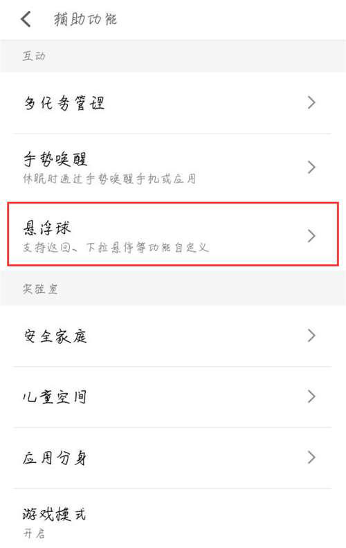 第三步:进入功能界面之后,我们找到【悬浮球】,然后点击进入。