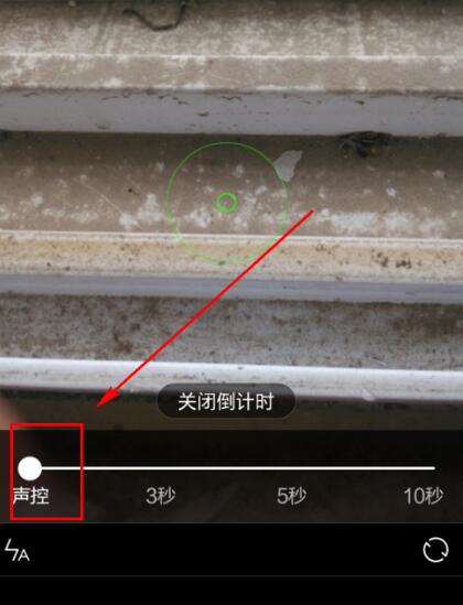 我们发现在屏幕的下方出现了倒计时的选项,里面有声控、3s、5s、10s。这代便什么呢?这代表打开声控或者延迟3s、5s或者10s拍摄。我们选择声控,下方的拍摄按钮就会自动变成话筒,这时候我们就可以将镜头对准想拍摄的地方,然后喊“茄子”!拍摄成功。