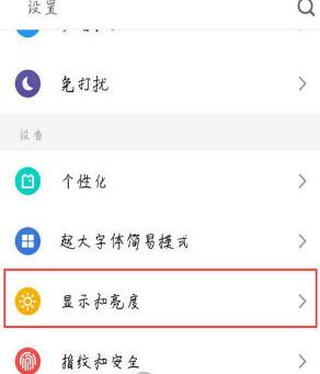 进入到手机设置界面后,我们还要点击进入到其【显示和亮度】功能选项。