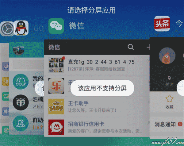 当然也是有很多应用是不支持分屏的,如果是不支持分屏的软件,是会有以下相关显示的。