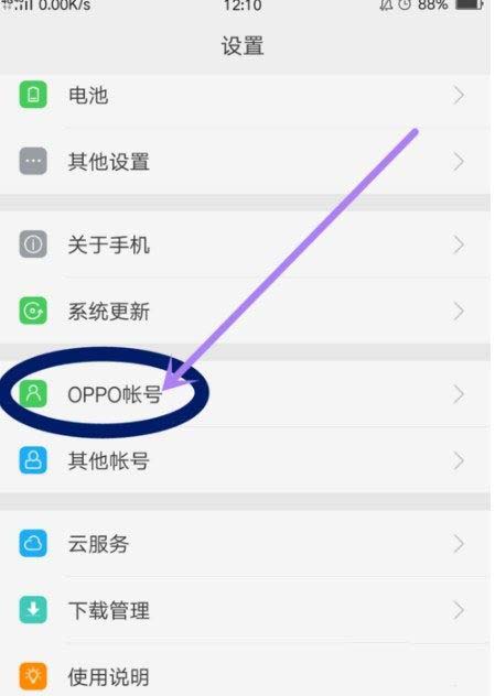 2、然后进入“OPPO账号”设置,如图所示;