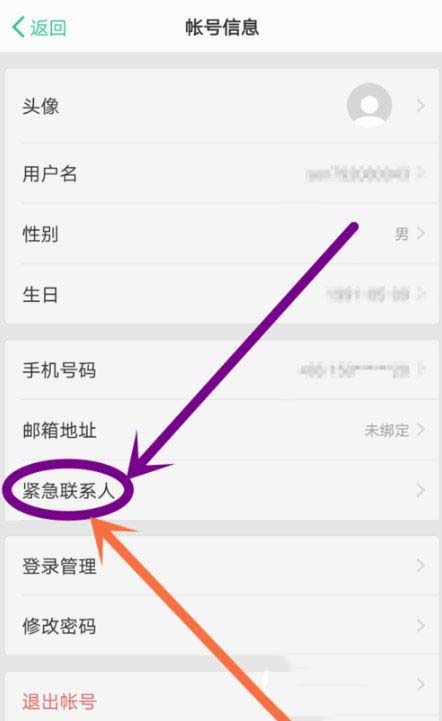 3、在账号信息设置界面,就可以找到“紧急联系人”功能了,点击进入,如图所示;