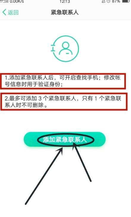 4、接下来点击“添加紧急联系人”,OPPO手机最多支持同时设置3个紧急联系人,如下图所示;