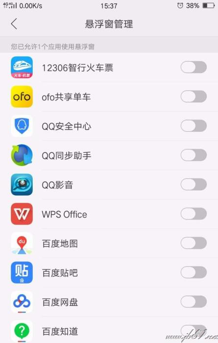 在悬浮窗管理内管理需要关闭或打开的软件悬浮窗,小编没看到微信的图标,也就是不能管理微信的悬浮窗。