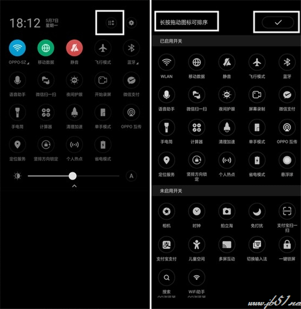 下拉顶部菜单栏,点击右上角第一个图标,在“未启用开关”项找到“支付宝扫一扫”并点击,也可以长按图标拖动到喜欢的位置,设置完成之后打勾即可。