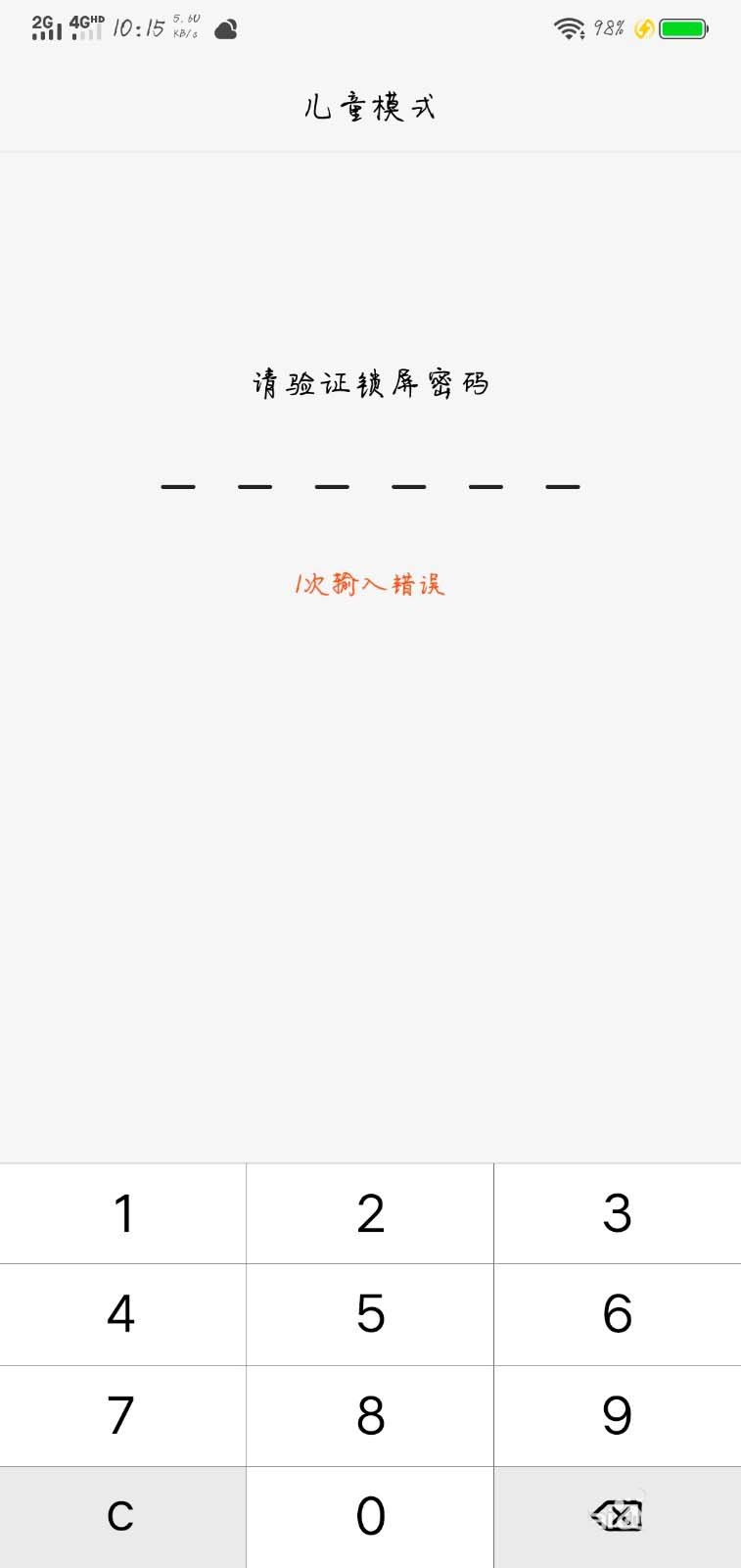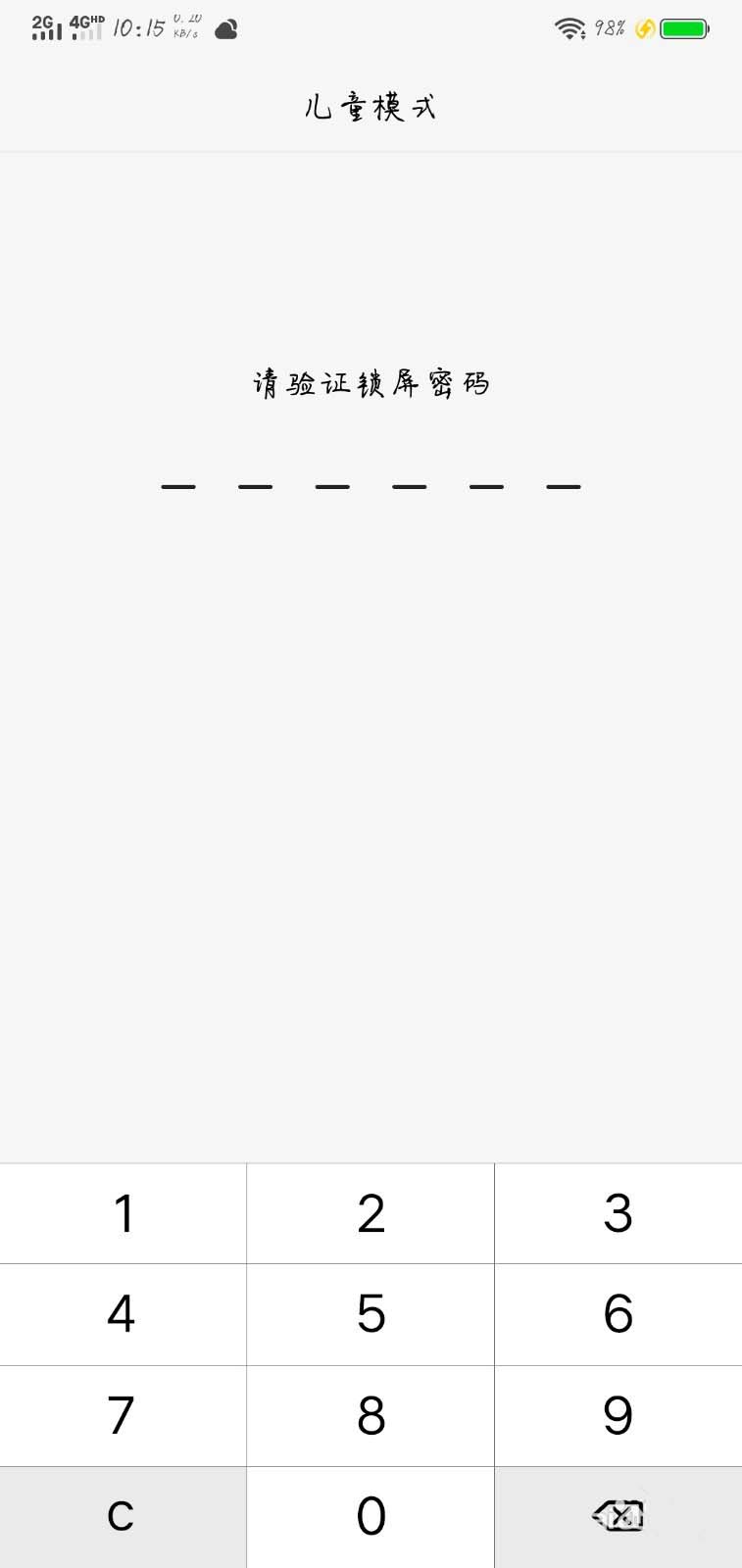 2、儿童模式的页面,再输入锁屏密码。