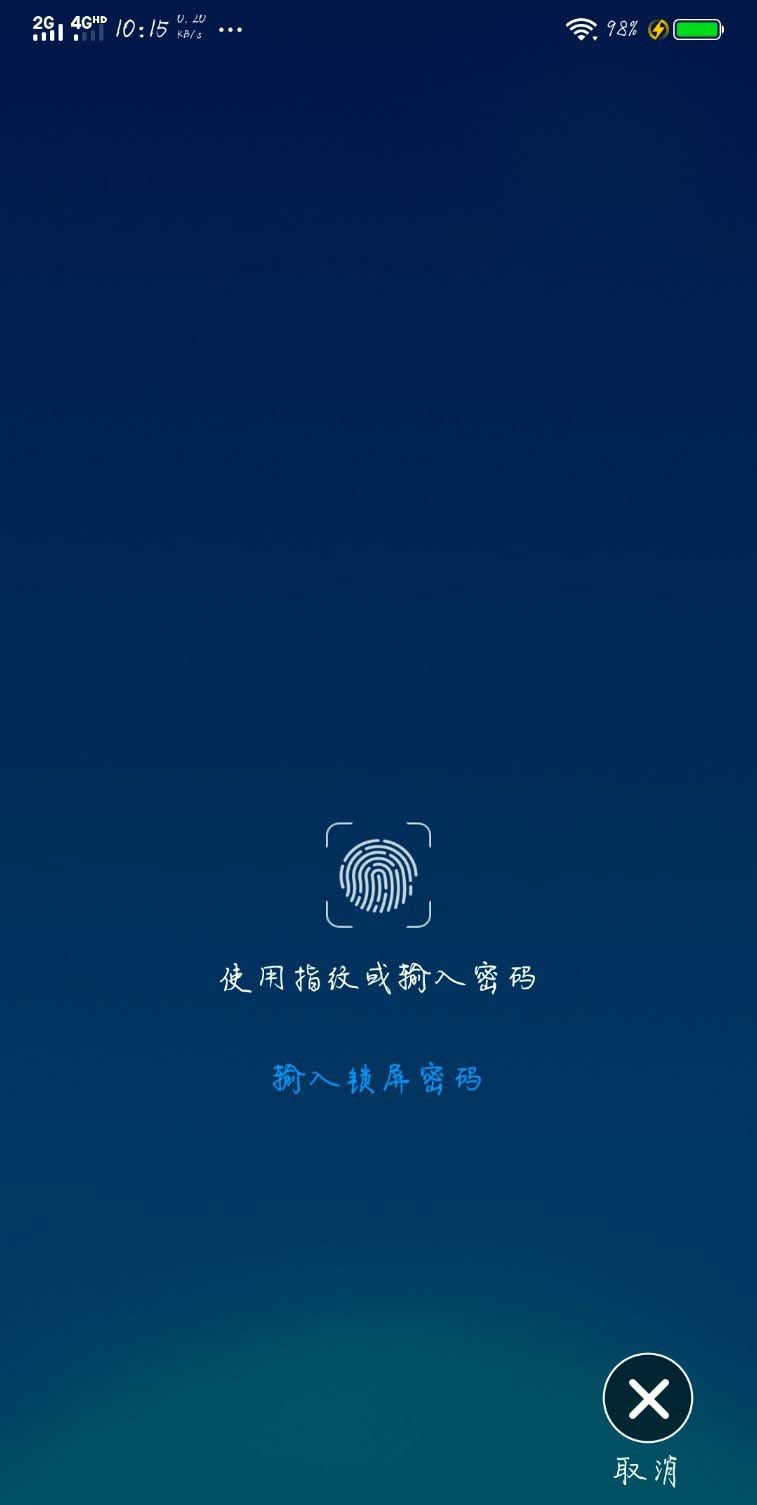 5、可以使用指纹退出,还可以使用锁屏密码退出。