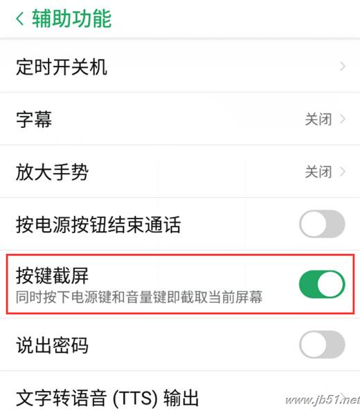 首先进入【设置】-【辅助功能】找到【按键截屏】功能选项,点击打开,然后同时按住【电源键】+【音量下键】即可快速实现截屏,操作过程非常简单。