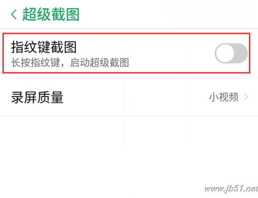 首先进入【设置】-【超级截图】找到【指纹键截图】功能选项,点击打开,然后常按指纹按钮也可以快速截图。