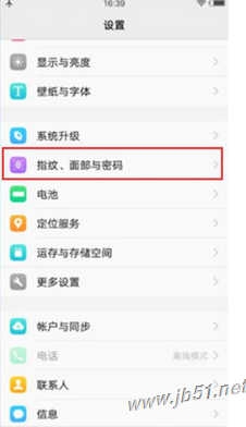 第一步:打开vivoz3手机,找到【设置】选项并点击进入,找到【指纹、面部与密码】选项。