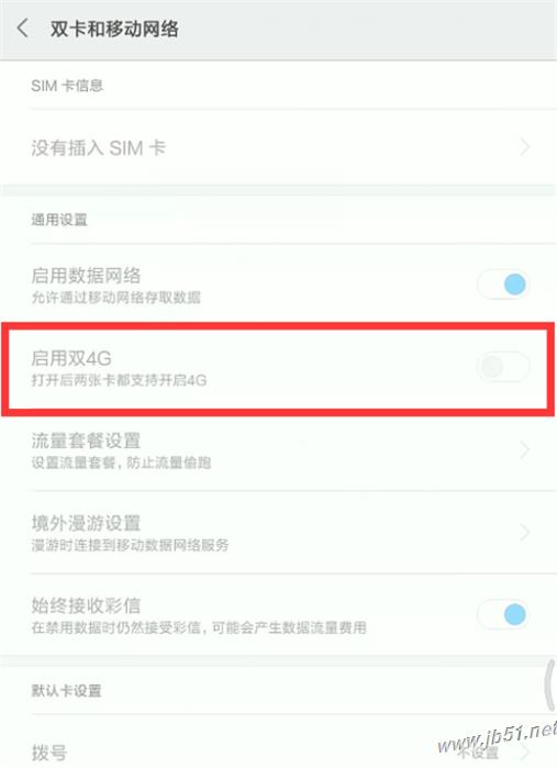 3、找到【启用双4G】选项,打开后面的开关即可。