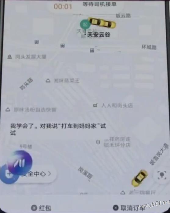 2、然后对语音助手说出“我教你”,并说出想要教小艺学习的语音指令,以“打车到妈妈家”为例,