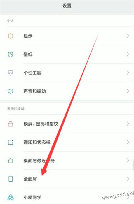 第二步:打开设置之后,在设置界面找到【全面屏】选项点进去。