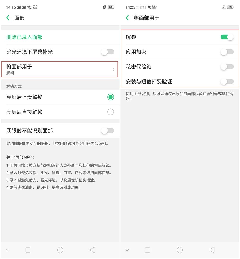 一、面部解锁设置路径