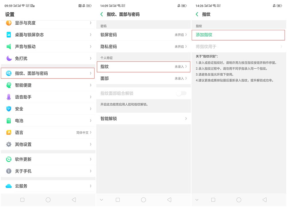 二、指纹解锁设置路径: