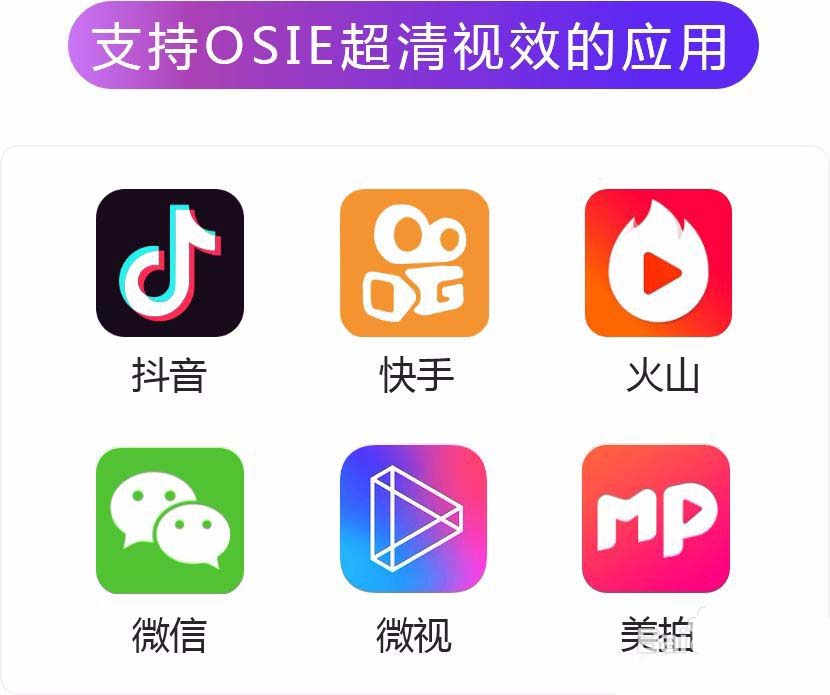 2、上滑找到『 OSIE超清视效』开启即可,支持的应用一览无遗:
