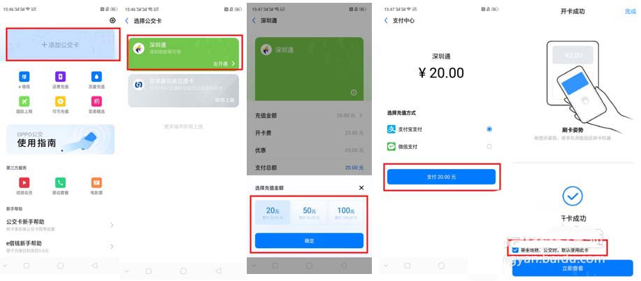 比如:【深圳通】--点击【去开通】--支付开卡费及充值金额--开通成功。
