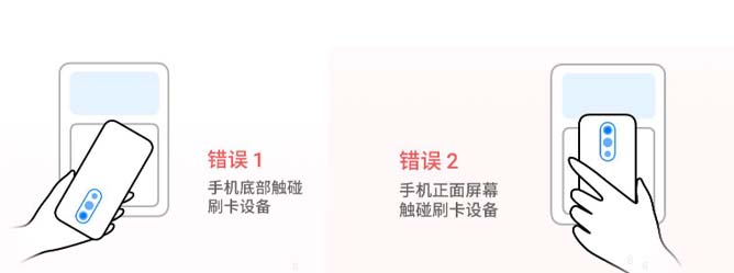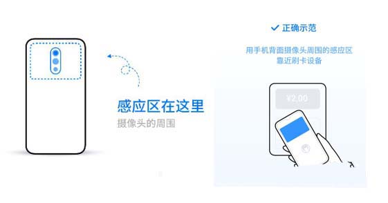 开卡成功后,勾选乘坐地铁、公交时,默认使用此卡,使用时将手机靠近读卡器或地铁进站口闸机,即可直接刷卡乘车,手机的感应器在摄像头周围,用手机背面摄像头周围的感应区靠近刷卡设备,可参考下面的图例: