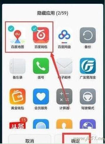3、然后我们只要点击勾选需要隐藏的应用,再点击【确定】即可,退出后需要再次打开隐藏应用仍然双指捏合放在手机屏幕上,然后双指往外推即可显示。