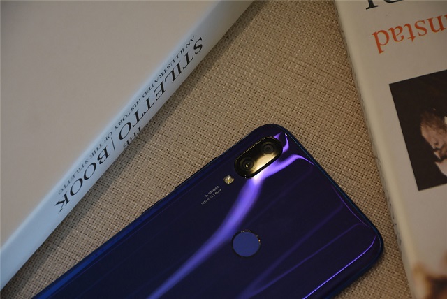 小米Play背面为2.5D玻璃后壳,并加入了渐变色工艺,在光线下会呈现出不错的反光效果。背面设计有竖形双摄、指纹传感器和Logo等元素。