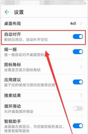 5、选择自动对齐选项,桌面上的图标就会自动对齐显示,当删除应用后,图标会自动补齐空位。