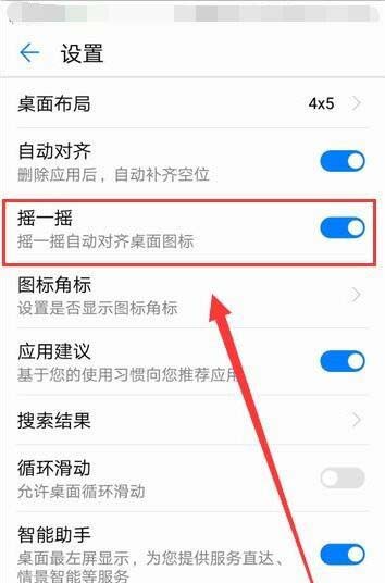 6、摇一摇选项,摇一摇后可以实现自动对齐桌面图标。