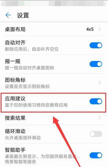 10、选择应用建议选项,可以设置手机基于自己的习惯推荐应用。