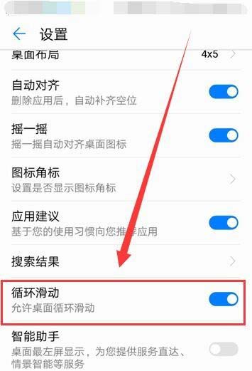 11、循环滑动选项,可以设置桌面是否允许循环滑动。