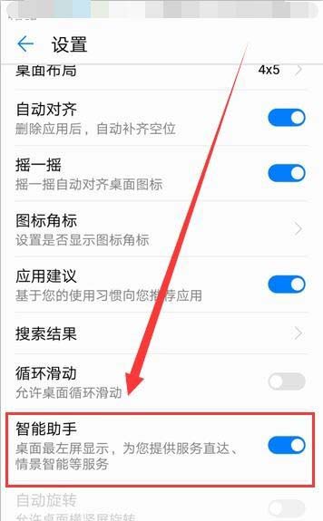 12、智能助手选项,可以设置是否显示桌面最左屏,以提供直达、情景智能等服务。