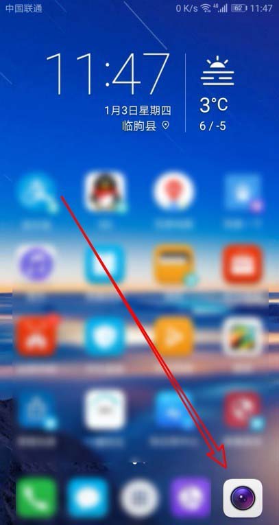 1、首先我们在华为手机上左右的滑动屏幕,在屏幕上找到华为手机的相机图标。