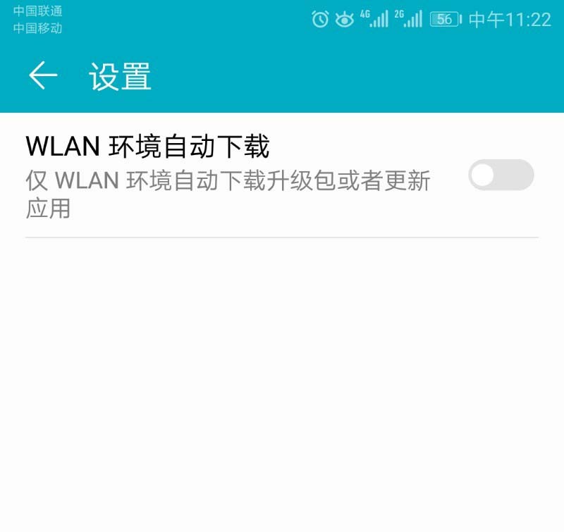 3、更新设置里只有一个,关闭WLAN 环境自动下载的开关,我们点击关闭,就不会自动下载更新,但会提示我们下载更新,每次开屏后联网都会弹出更新,我们只要取消就可以了,但会在设置上有个红点,如果我们打开此按钮,就会无线联网状态下自动下载,然后提示我们更新,我们可以在文件里把更新文件删除掉,就可以不更新了, 但还会再次下载,然后我们只能再次删除。
