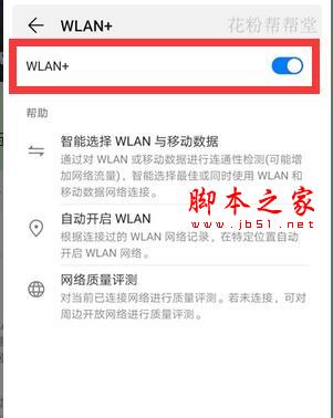 3、然后我们就会进入WLAN设置界面,在这里点击打开【WALN+】的开关,即可打开link turbo网络加速技术,点击关闭【WALN+】的开关即可关闭link turbo。想要网速更快我们可以打开这个开关,使用link turbo即可提升网速,流量不够用,怕费流量可以选择关闭。