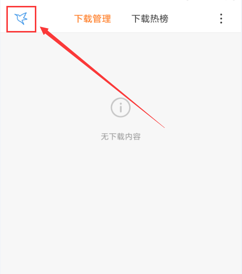 1、在手机中找到并打开“下载管理”应用,在主界面中点击左上角的小鸟图标按钮。