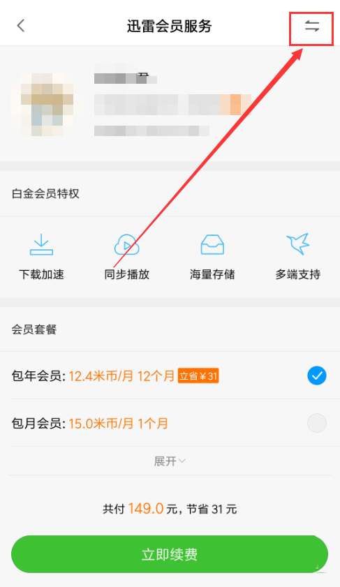 1、在账号的会员服务界面中,点击右上角的图标按钮,点击进入。