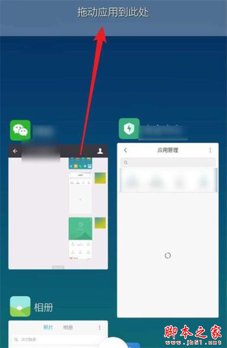 长按需要分屏的应用,将应用拖入到手机顶部。