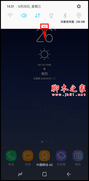 2、在通知面板上向下滑动【=】图标。 (或者在主屏幕使用双指向下滑动。)