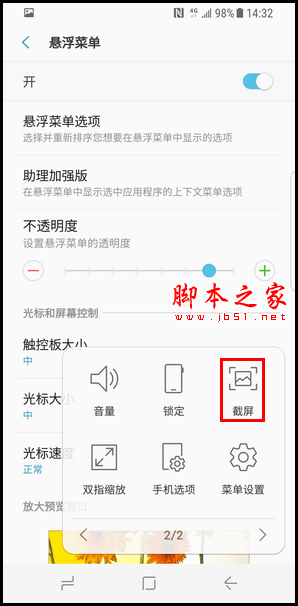 (注:悬浮菜单界面不会出现在截屏图片上。)