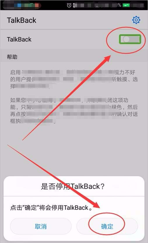7、TalkBack窗口中,将TalkBack后的开关关闭。