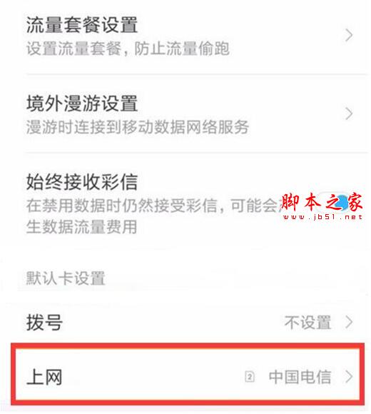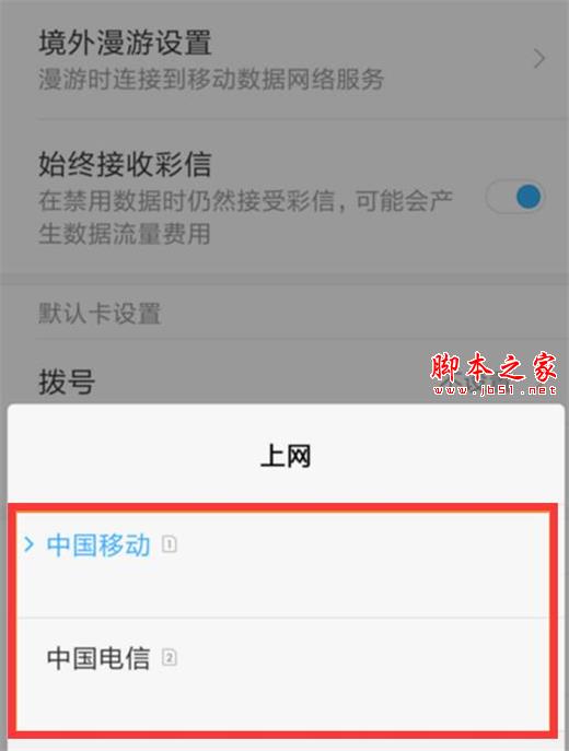 点击之后,下方会弹出来两个选项,选择需要上网的手机卡即可。