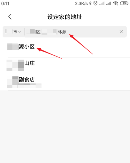 3、点击家的地址设置按钮,输入家庭地址后选择列出的地址。