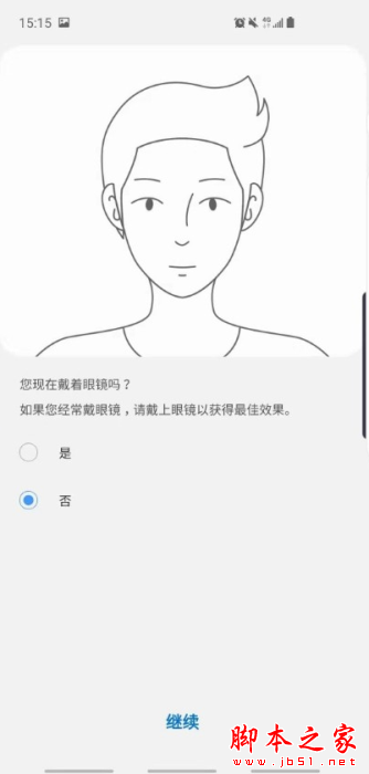 4、根据个人情况选择是否戴着眼镜,然后点击【继续】。