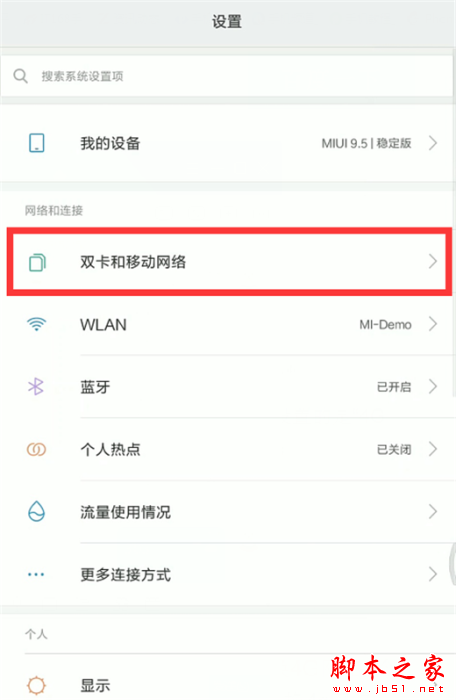 第二步:在设置界面,点击进入【双卡和移动网络】选项