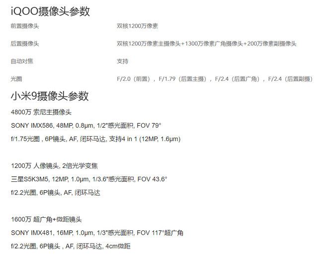 作为当下人气最高的两款小龙855旗舰,iQOO和小米9无论是性能还是功能设计都各有千秋。而在拍照上同样是各有优势,iQOO有着更好的AI场景识别优化,同时夜景方面也有更稳定的发挥,而小米9天生4800万像素则带来了更丰富的可玩性和可塑性。因此对于喜欢随手拍的小伙伴,可能是iQOO更为适合,动手能力的强的则选小米9,后期空间更大。