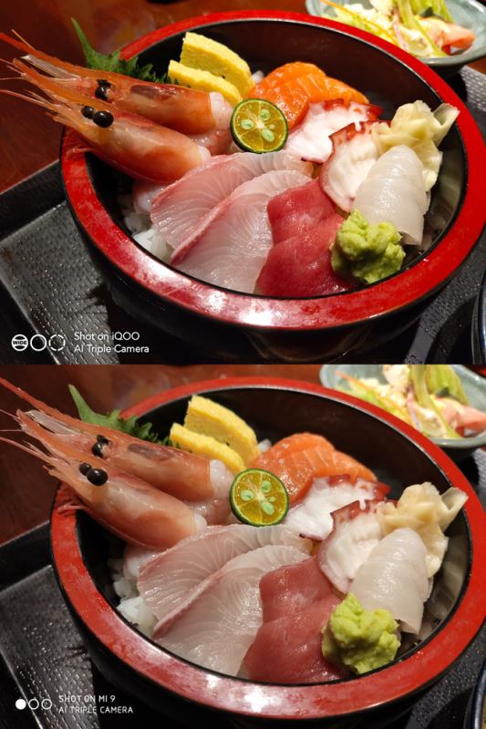 由于室外的雨越下越大,我们顺势将镜头转移到室内。在食物照片上,iQOO照片色彩的优势进一步变得明显。对此,熟悉小米9拍照的玩家表示,可以通过相机中的饱和度、对比度进行个性的设定,这样拍出的照片效果会更好。这样看来,小米9会更适合动手能力强的用户。