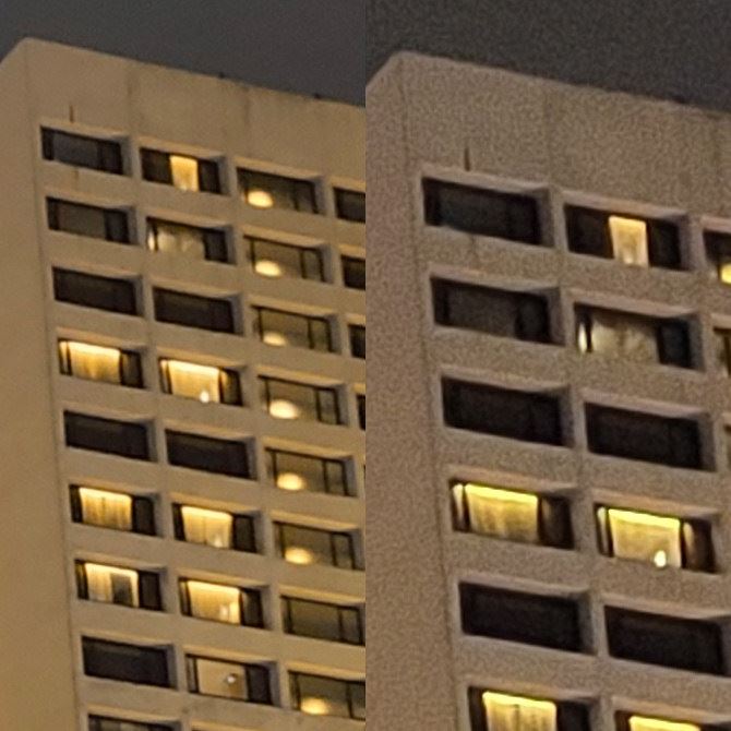 从放大的100%的截图看,我们不建议小米9在夜拍时打开4800万像素模式。因为噪点实在有点多,尽管放大后画面细节还在。